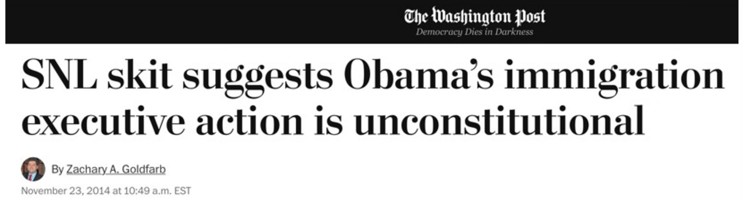 CNN and PolitiFact were not alone in going apoplectic over Saturday Night Live having fun at Obama’s expense. In 2014, the Washington Post “fact-checked” another SNL skit, declaring the comedy skit “wrong.”